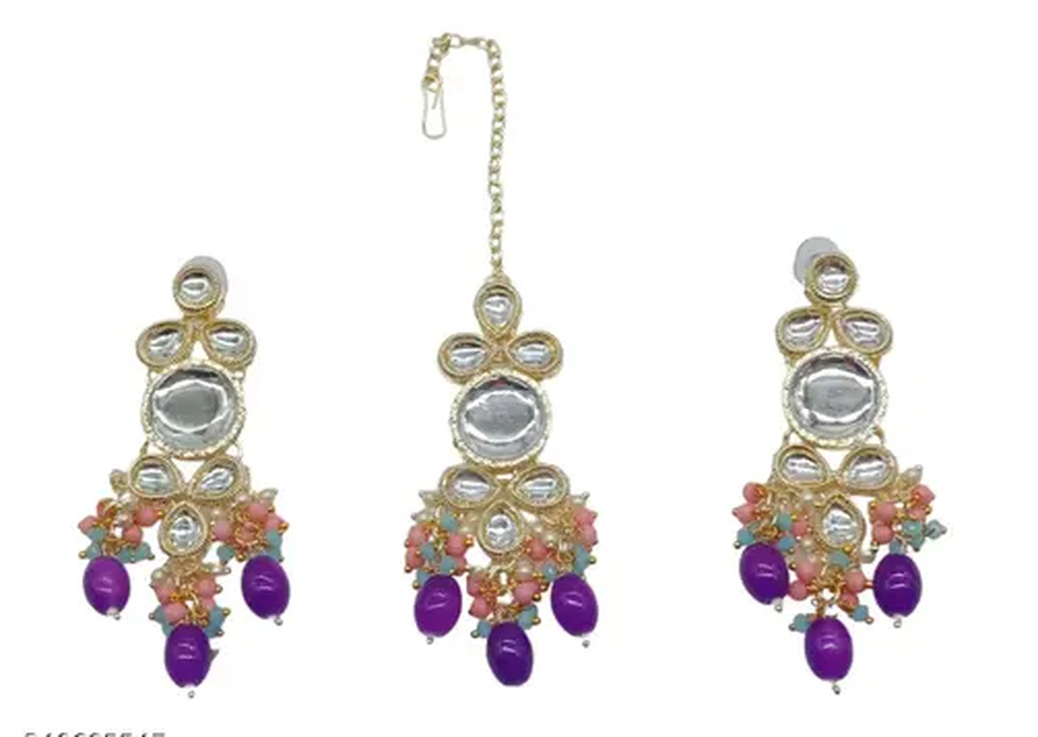 • Matching Kundan Earrings With Purple Drop Accents