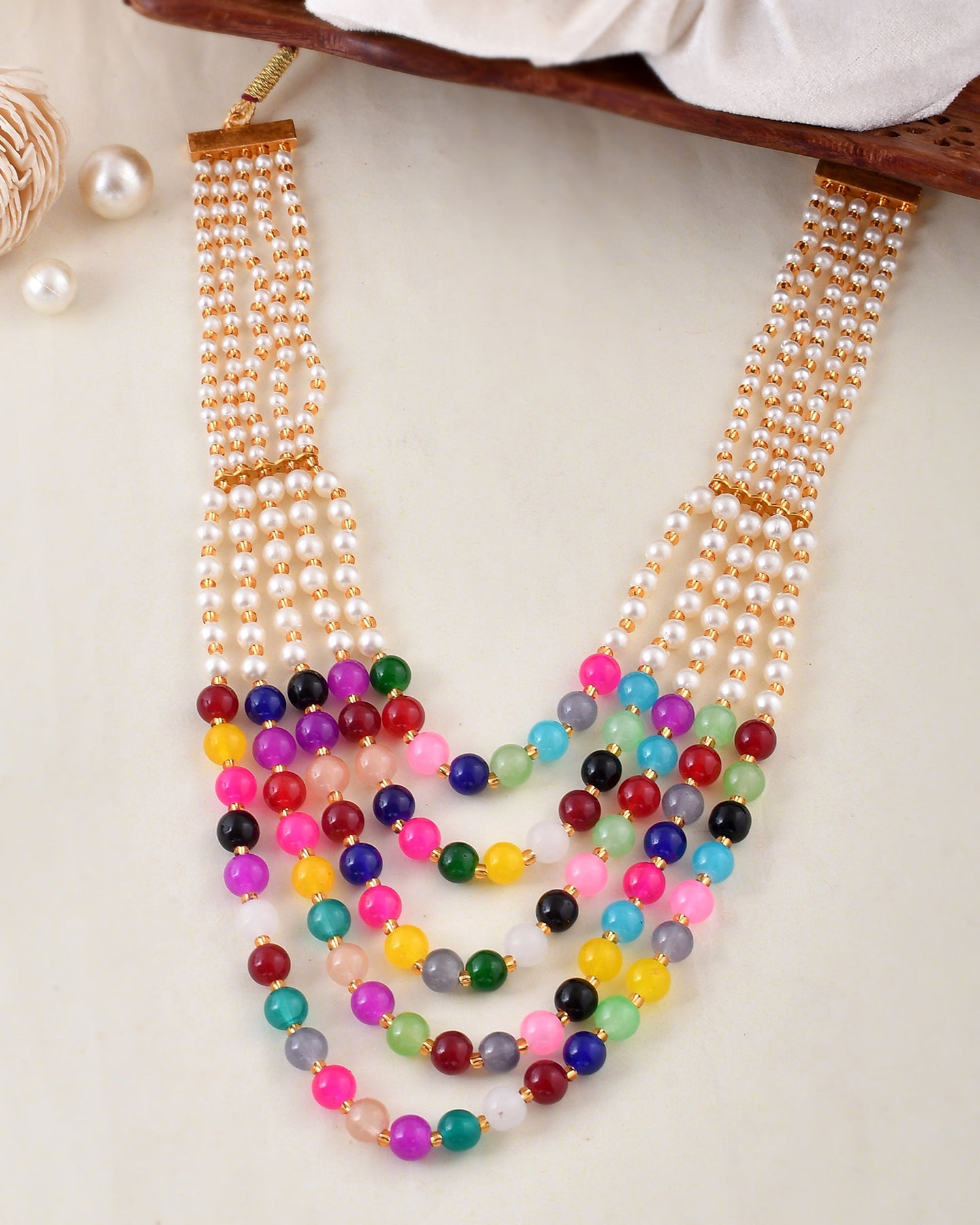 Women's Shine Beads Ethnic Necklace | Gemstone Jewellery Set