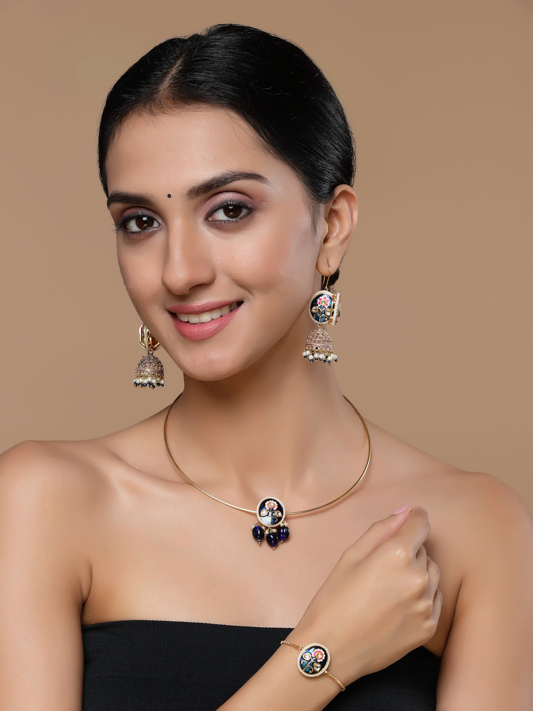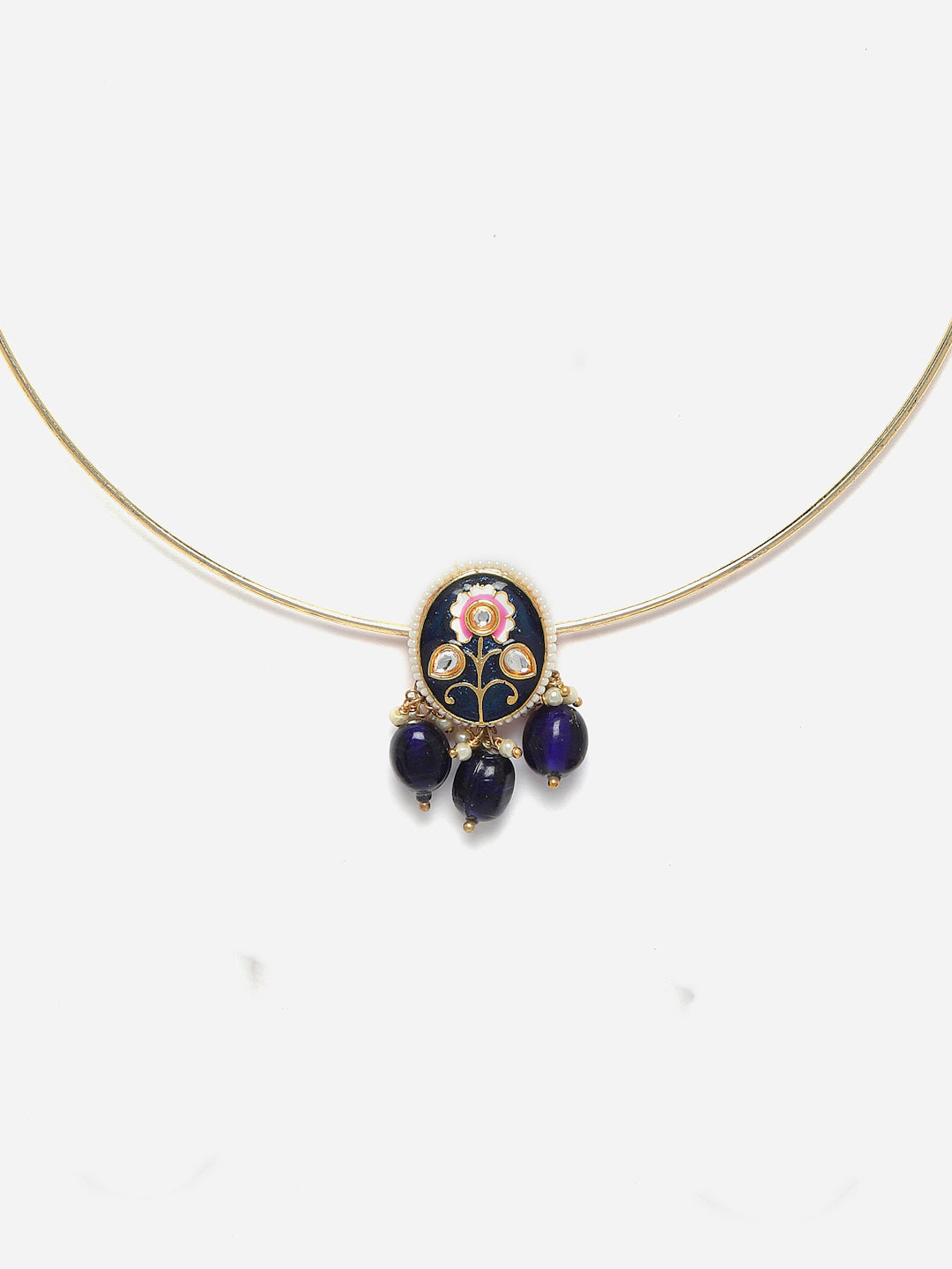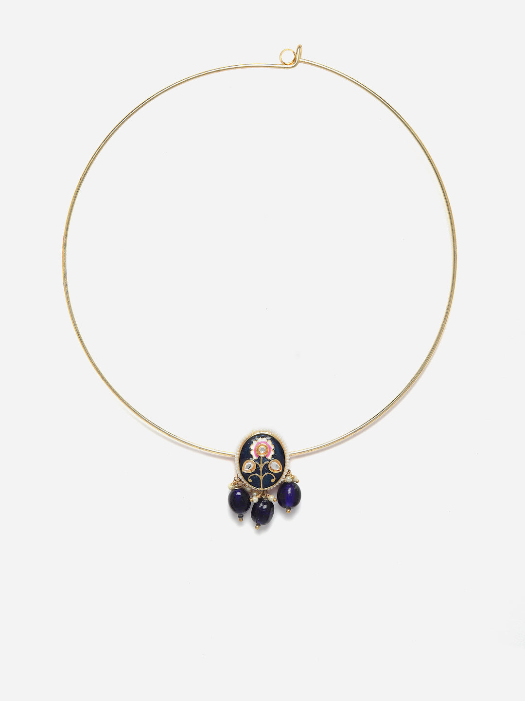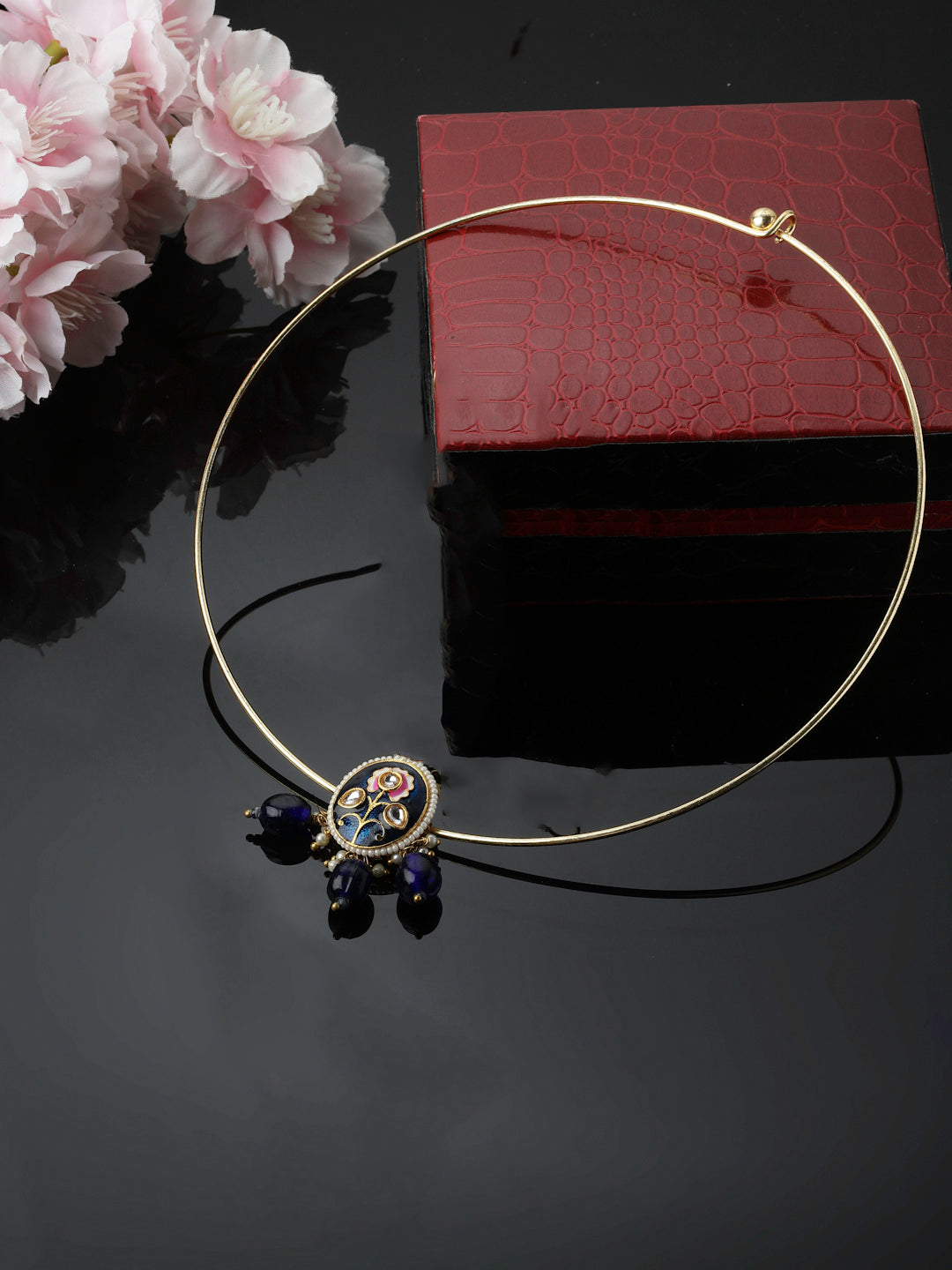 Meenakari Blue In Handmade Kantha Style With Elegant And Claasic Pc To Flaunt This Season; Category Of Jewellery Is Necklace; Sub Category Is Haar; Ideal For Women; Color Is Blue, Gold, Pink, White; Gemstones Used - Kundan, Pearls, Natural Stones; Plating Is Gold-Plated; Base Metal Is Alloy; Other Material Used - None; Size Is Freesize; Adjustable - No; Weight Is 19 Gms; Mesaurements - Length Of Necklace =38 Cm; Width Of Necklace = 18 Cm; Adjustable - No; Content 1 Necklace