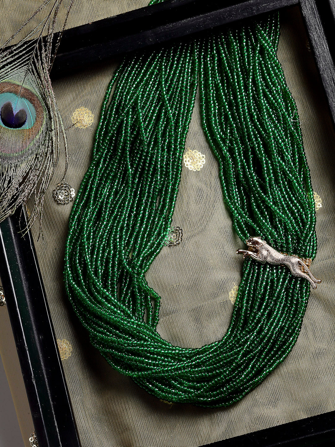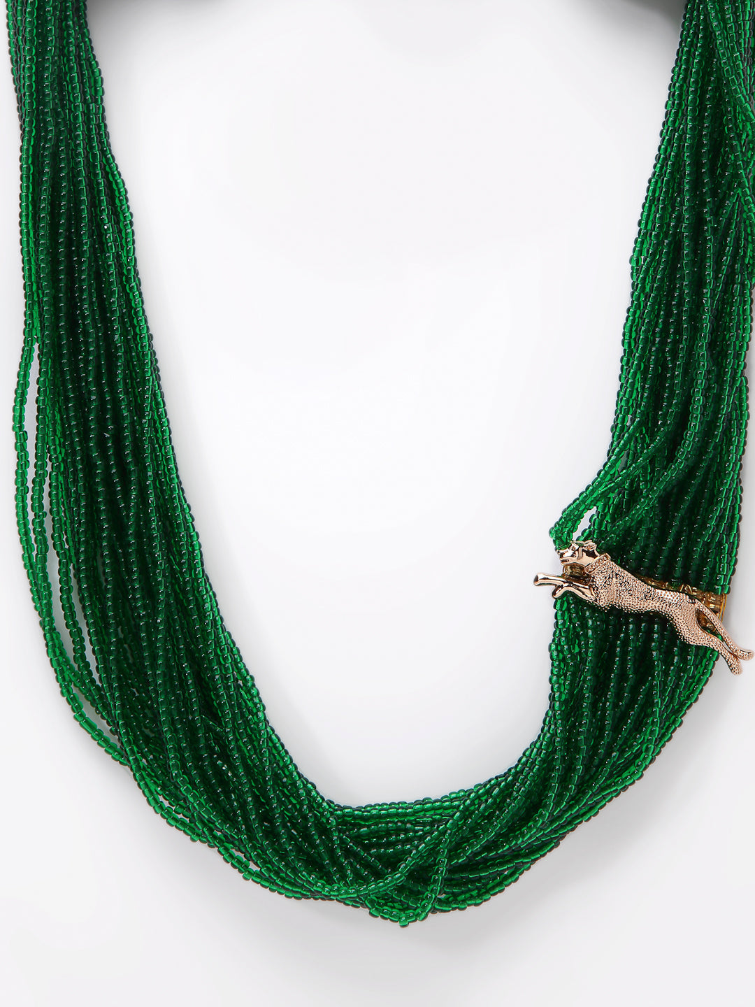 Green & Gold Layered Necklace With Natural Stones & Faux Emeralds; Category Of Jewellery Is Necklace; Sub Category Is Layered; Ideal For Women; Color Is Green, Gold; Gemstones Used - Natural Stones, Faux Emeralds; Plating Is Gold-Plated; Base Metal Is Alloy; Other Material Used - None; Size Is Freesize; Adjustable - No; Weight Is 280 Gms; Mesaurements - Length Of Necklace =66 Cm; Width Of Necklace = 5 Cm; Adjustable - No; Content 1 Necklace