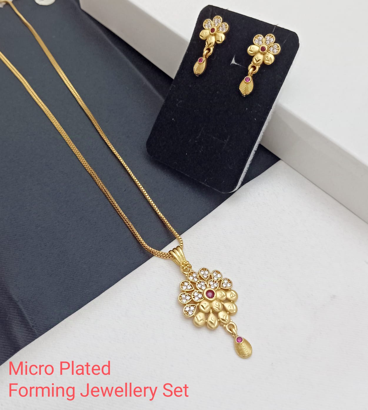 Micro Platting Pendant Chain Earring Set