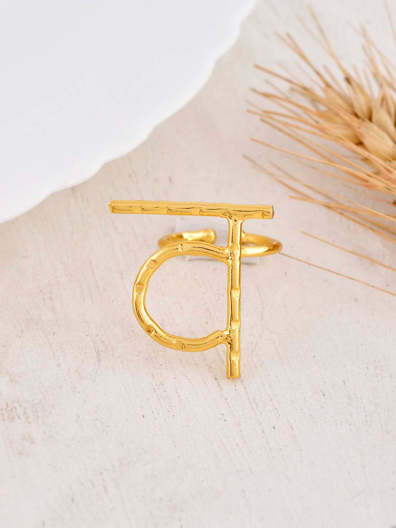 Akshar Ring Rv34 Color :Gold Material :Brass Closure :Hoop Care Instructions :Keep Away From Moisture Weight :0.5G