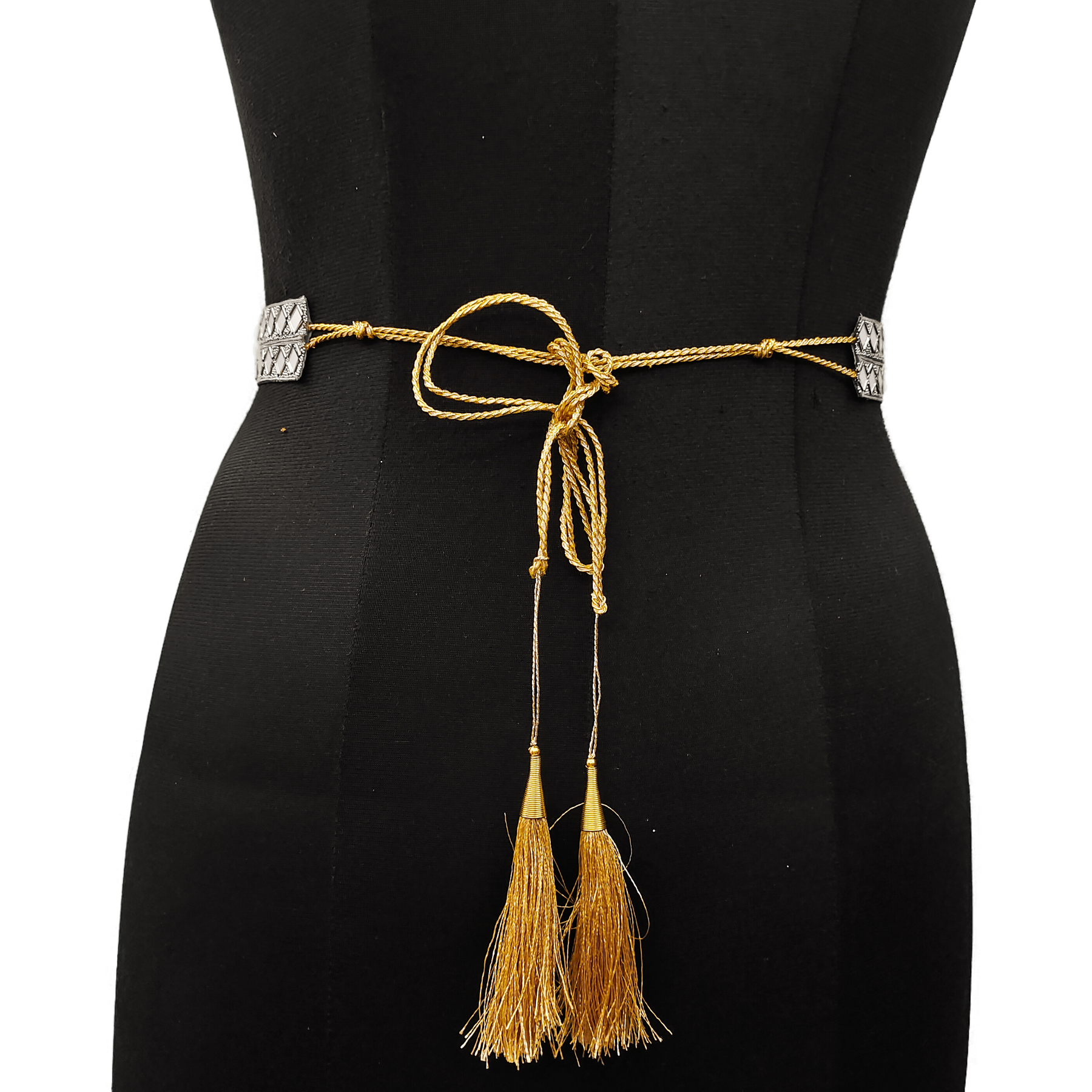 Handcrafted Katdana Val Work With Fancy Lace Inner Gota Fabrics With Dori 2 Attractive Lattkan And Adjustable Free Size Belt For Women. .Kamarbandh Cloth Waist Belt Perfect Match On Wedding Sarees & Lehanga Cloth Vaddanam Ottyanam Kardhani Traditional Dresses Salwar Kameez , Kurtis , Chaniya Choli , Half Saree , Anarkali & Even Jeans Also.