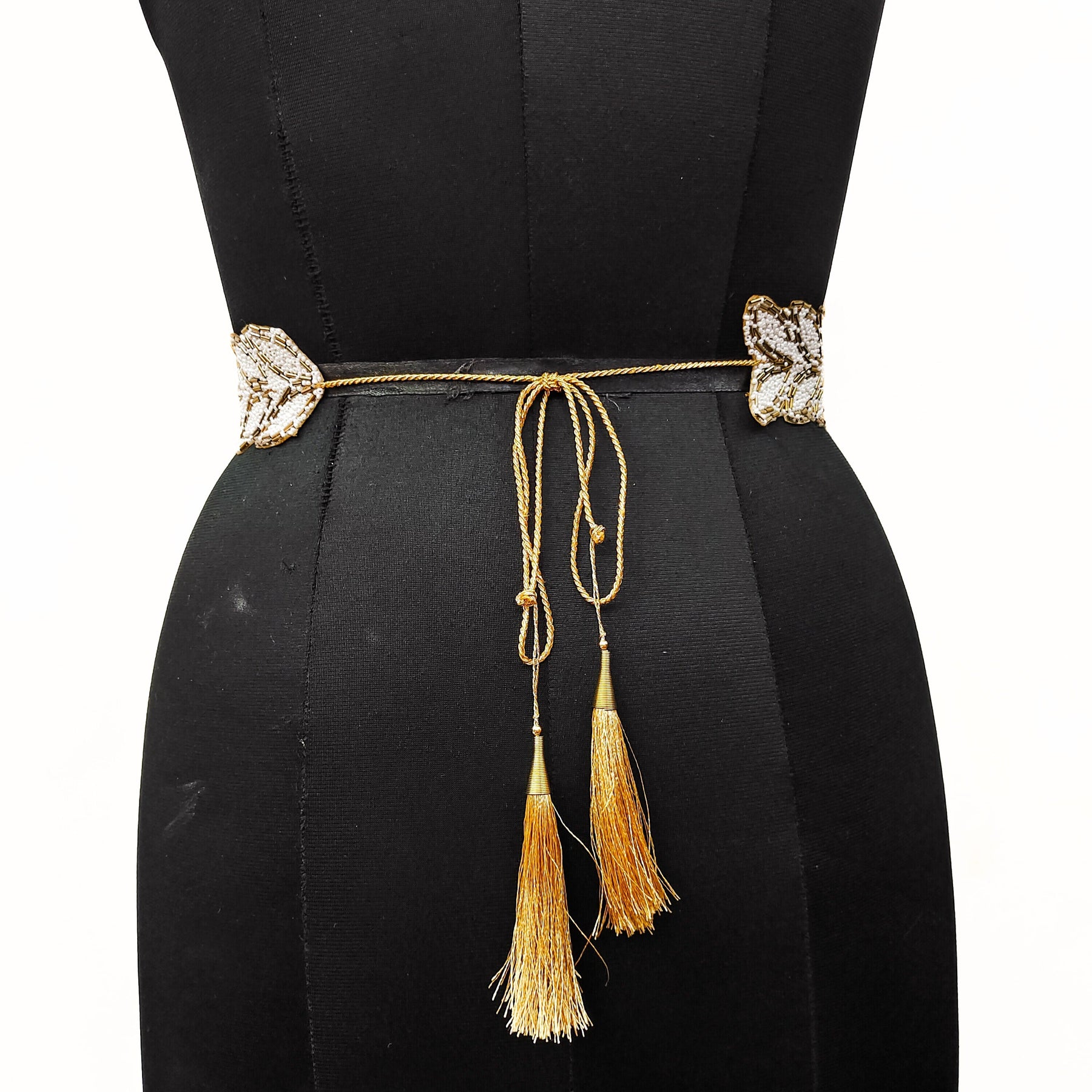 This Traditional Cloth Saree Belt Chain Kamarband Kamarpatta Is An Accessory That Adds Charm To The Waist Women Body. Tips To Style Kamarbandh The Right Way: First Of All You Should Figure Out What Type Of Waist Belt For Women Will Go Well With Your Outfit, Colour And Pattern. If Your Outfit Has Golden Embroidery Or Combination Then Go For Cloth Belt Kamarpatta Jewellery. If Your Saree Or Lehenga Has Heavy Embroidery Work Try To Go For Simple Waist Belt.To Keep It Simple Yet Elegant Go For Pearl Or Diamond & Crystal Stone Waist Belt Jewellery This Will Lift Your Look With Ease.Kamarband Waistband Belt Handwork Bel