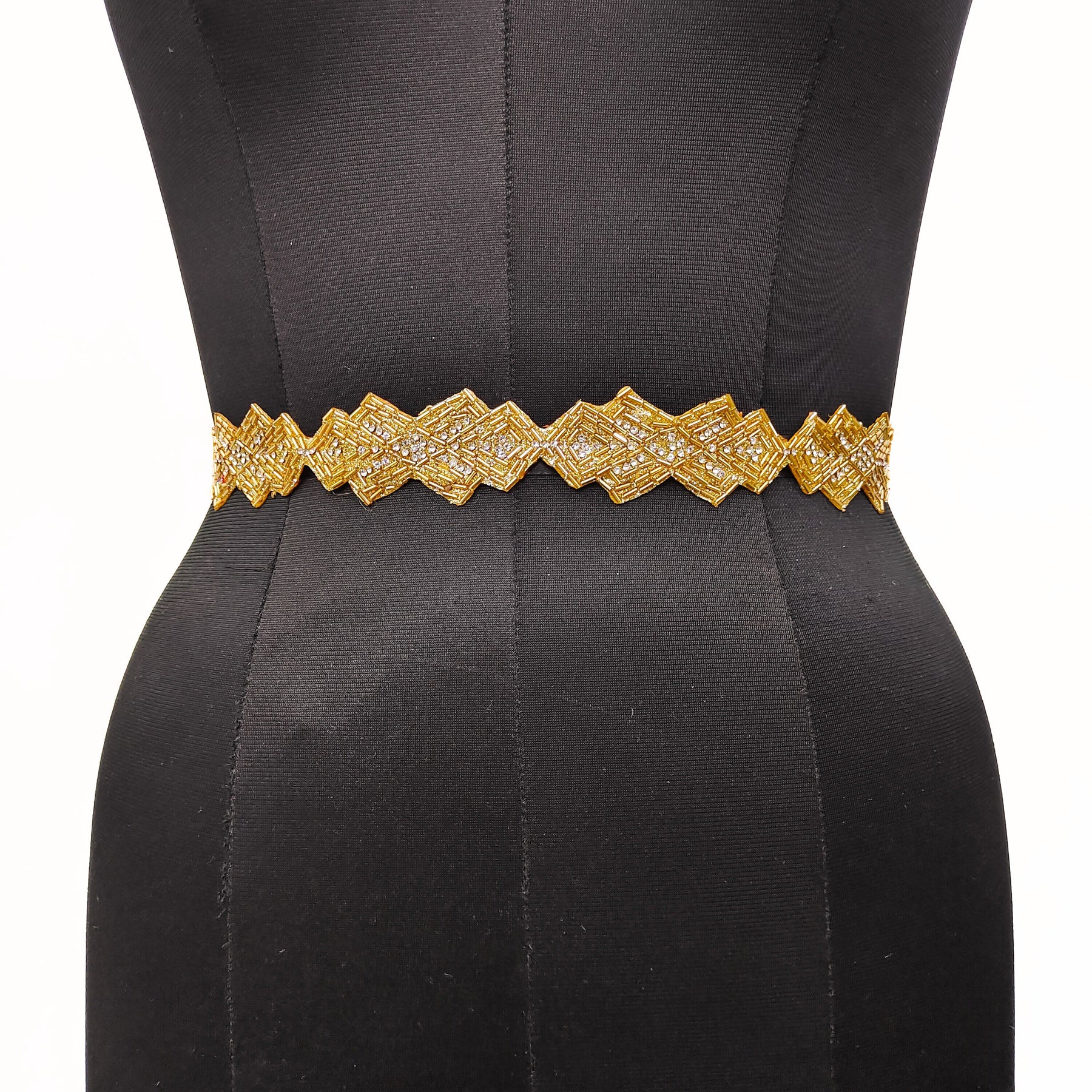 This Traditional Cloth Saree Belt Chain Kamarband Kamarpatta Is An Accessory That Adds Charm To The Waist Women Body. Tips To Style Kamarbandh The Right Way: First Of All You Should Figure Out What Type Of Waist Belt For Women Will Go Well With Your Outfit, Colour And Pattern. If Your Outfit Has Golden Embroidery Or Combination Then Go For Cloth Belt Kamarpatta Jewellery. If Your Saree Or Lehenga Has Heavy Embroidery Work Try To Go For Simple Waist Belt.To Keep It Simple Yet Elegant Go For Pearl Or Diamond & Crystal Stone Waist Belt Jewellery This Will Lift Your Look With Ease.Kamarband Waistband Belt Handwork Bel