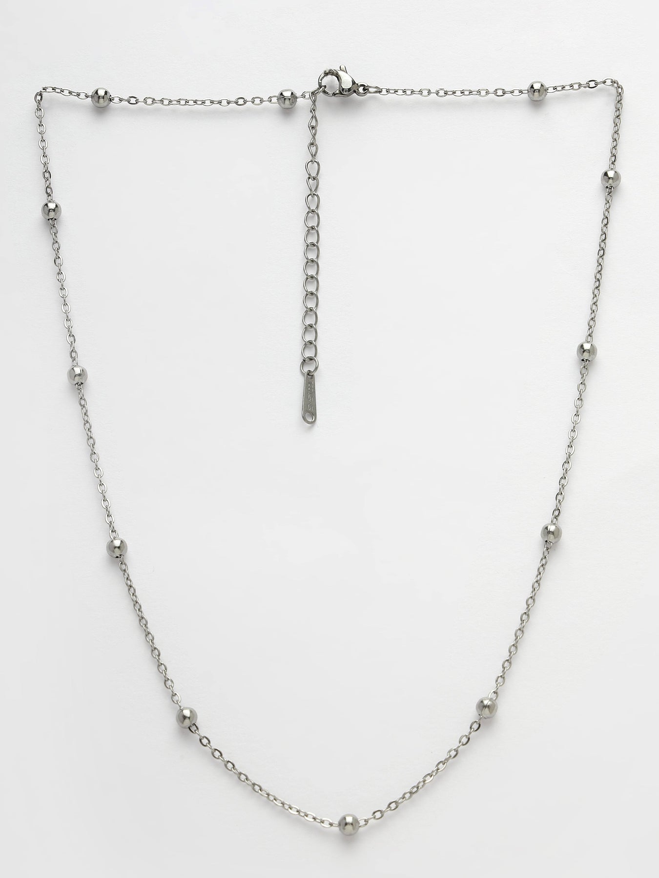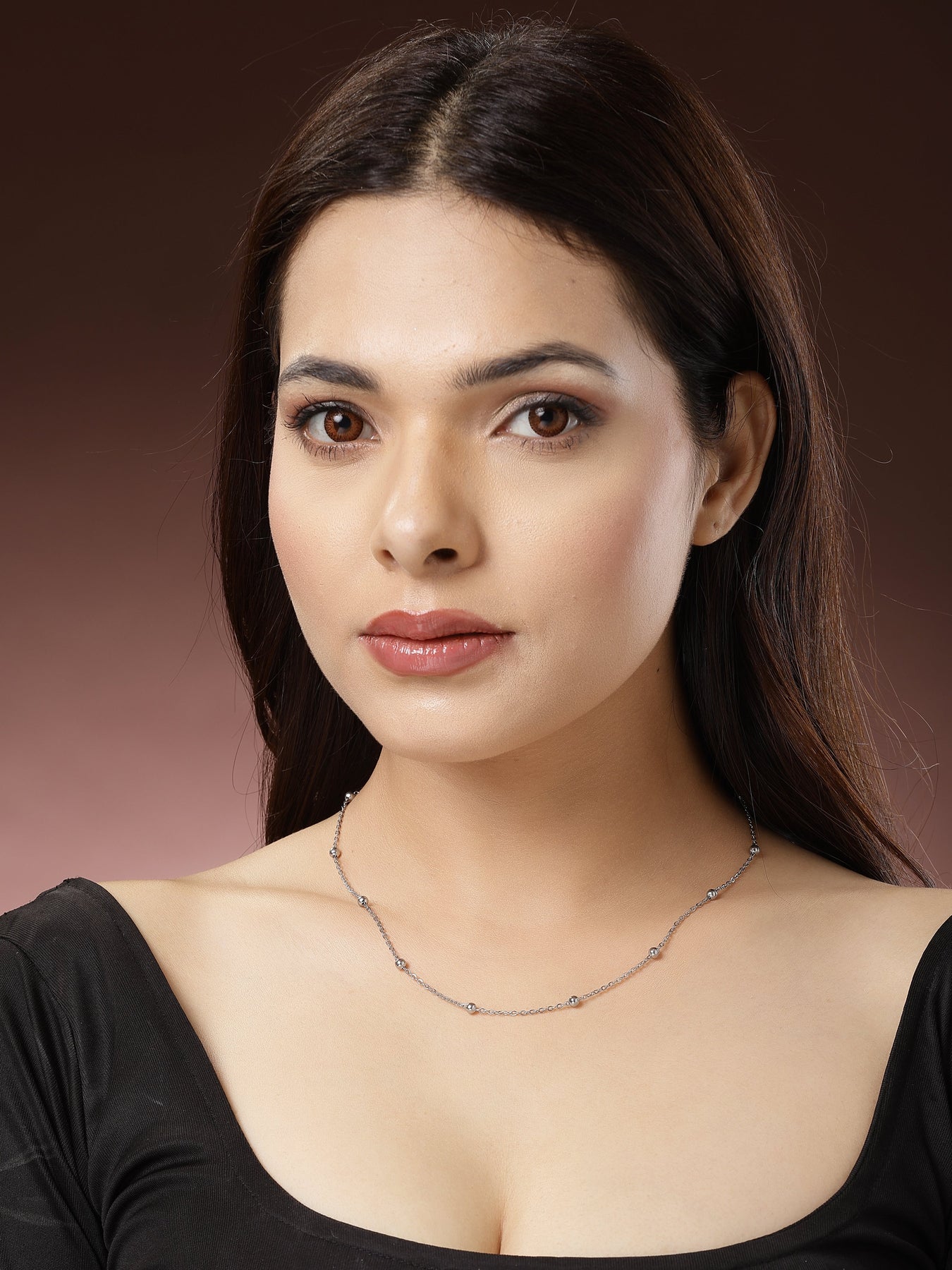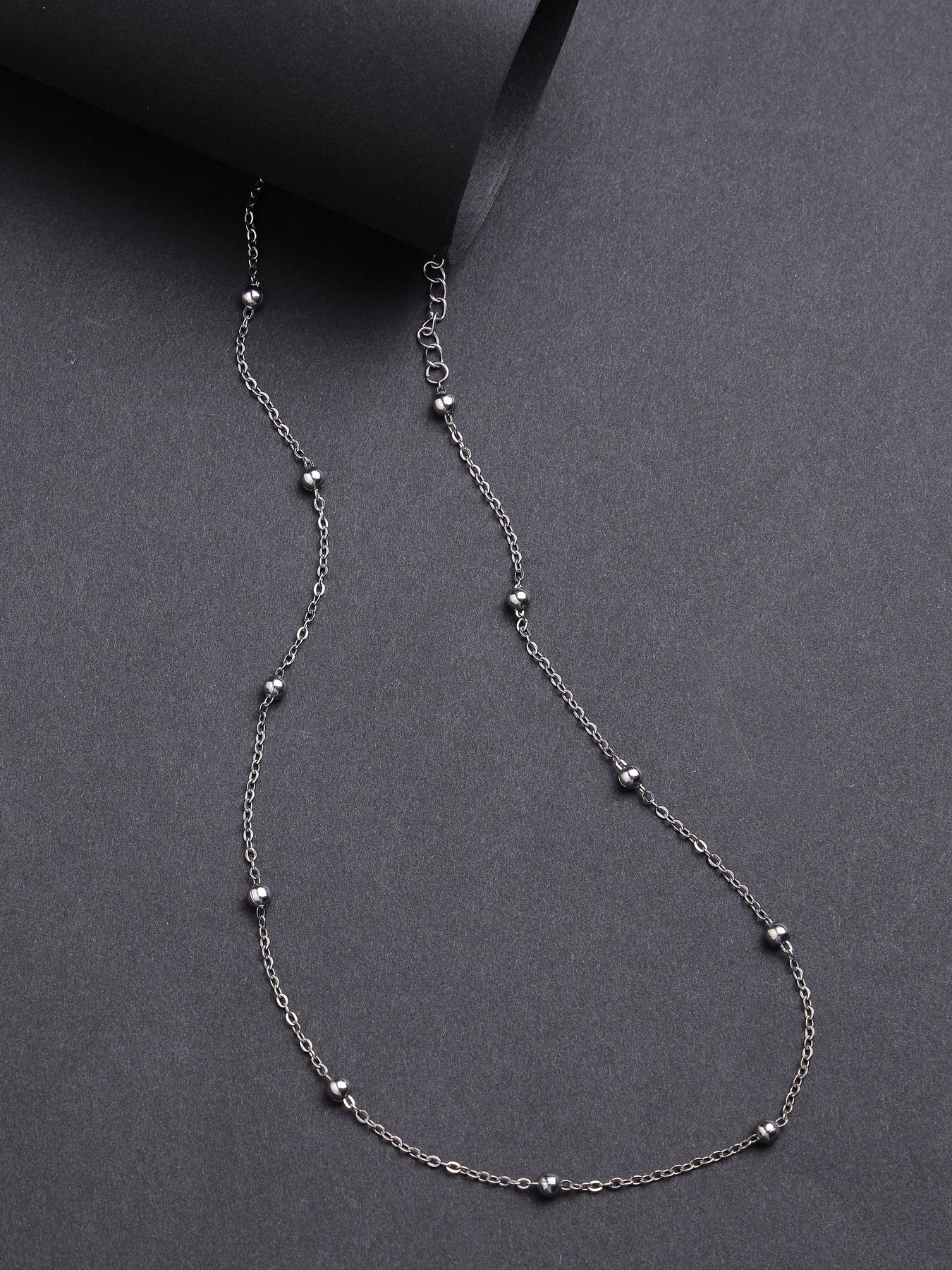 Style Note: Add a touch of understated elegance to your ensemble with the NVR Women Silver-Toned German Silver Oxidised Chain. This exquisite piece exudes timeless sophistication, featuring intricate oxidised detailing that adds depth and character to any outfit. The silver-toned hue lends versatility, making this chain a perfect accessory for both casual and formal occasions. Whether you're dressing up for a night out or adding a subtle accent to your everyday look, this oxidised chain is sure to elevate your style effortlessly. Embrace the beauty of simplicity and let this chain become a staple in your accessory collection, adding a touch of refinement to your every ensemble.